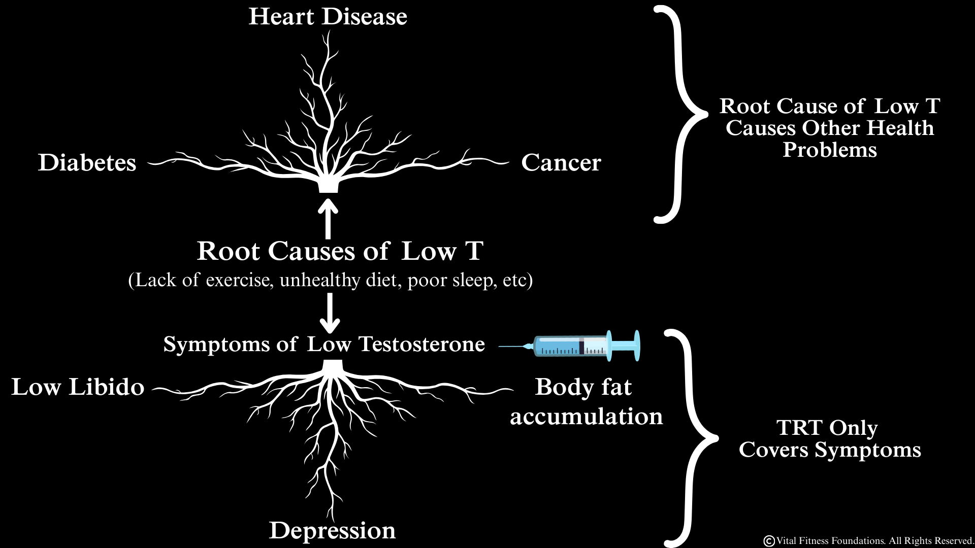 The other problem with TRT is it merely masks the symptoms of low testosterone without addressing its root causes.