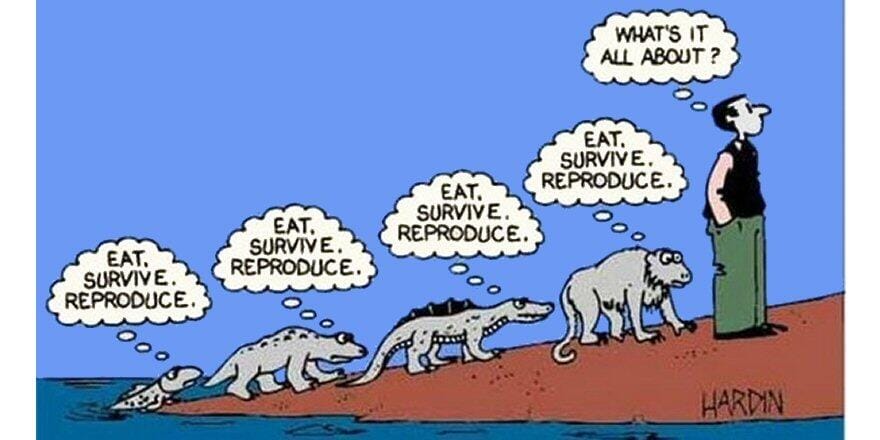 The two primary objectives of all biological organisms (including humans) are survival and reproduction, in that order, because dead organisms cannot reproduce.