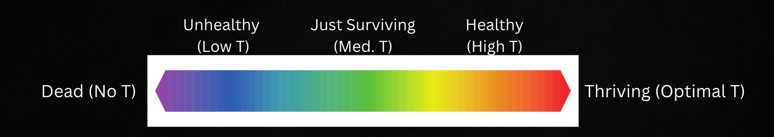 Survival is not binary; it's a spectrum ranging from barely surviving to fully thriving. A man's testosterone levels are a physiological reflection of where he lies on that spectrum. In fact, low testosterone is associated with an increased risk of all-cause mortality (5).